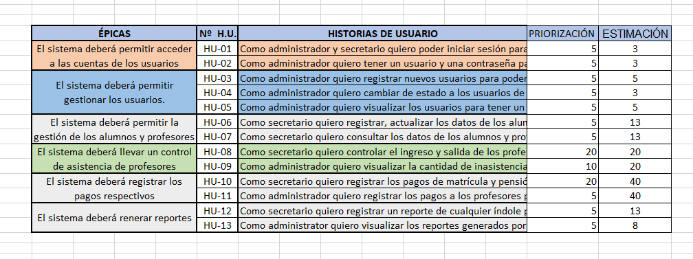 - Desarrollo en clase de Épicas e Historias de Usuario con uso de Postit.