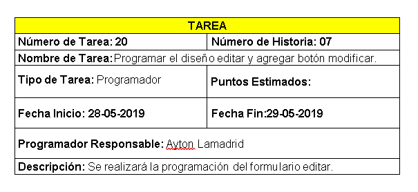 Usadas para describir tareas que realizan el proyecto. Deben tener relación con una Historia de Usuario.